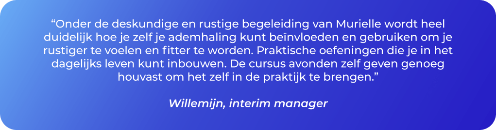 Ademen is een automatisch proces dat door je autonome zenuwstelsel geregeld wordt. Het autonome zenuwstelsel bestaat uit twee delen. Het parasympatisch zenuwstelsel (gericht op rust- en herstel) stimuleert ontspanning in het lichaam. Het sympathisch zenuwstelsel (vecht- en vluchtzenuwstelsel) activeert juist hart en organen. Door allerlei oorzaken kan er een disbalans in je adempatroon ontstaan. Wat echter bijzonder is dat je je adempatroon zelf bewust kan beïnvloeden, en hiermee dus ook je zenuwstelsel. Dit heeft veel effect op je mentale en fysieke gezondheid.